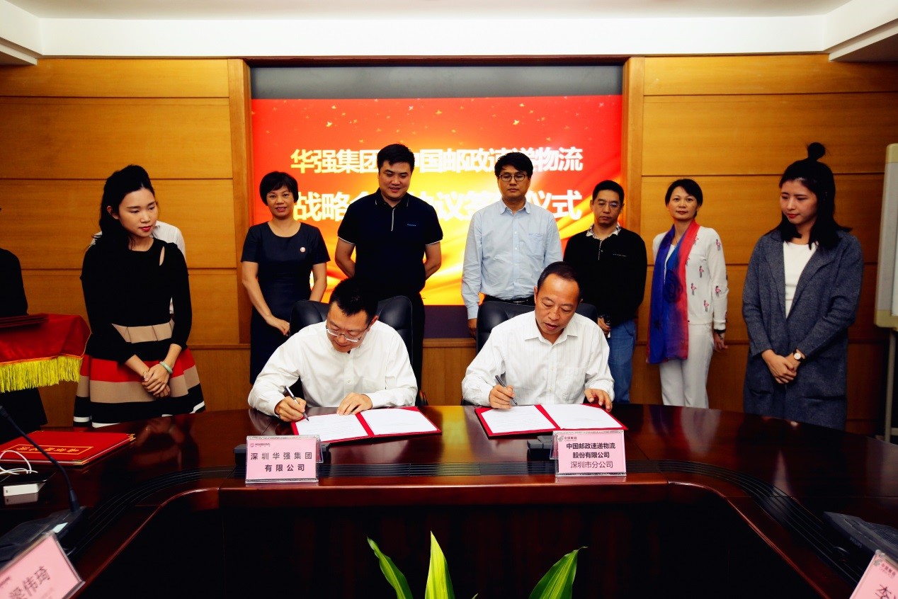 10月25日下午,深圳华强集团有限公司(以下简称“华强集团”)与中国邮速递物流股份有限公司(以下简称“EMS”)签订战略合作协议,华强集团总裁李曙成、EMS党委书记庄继敏代表双方签约。