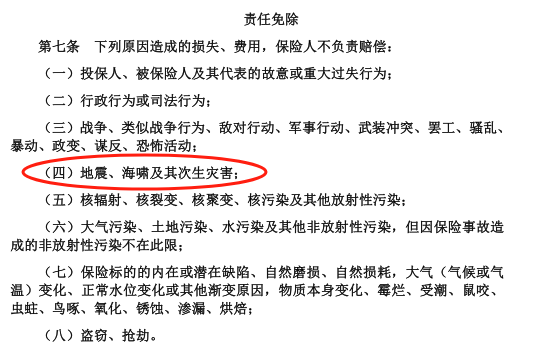 通常不把地震列为免责范围