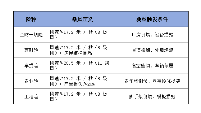 不同险种对 “风” 的定义
