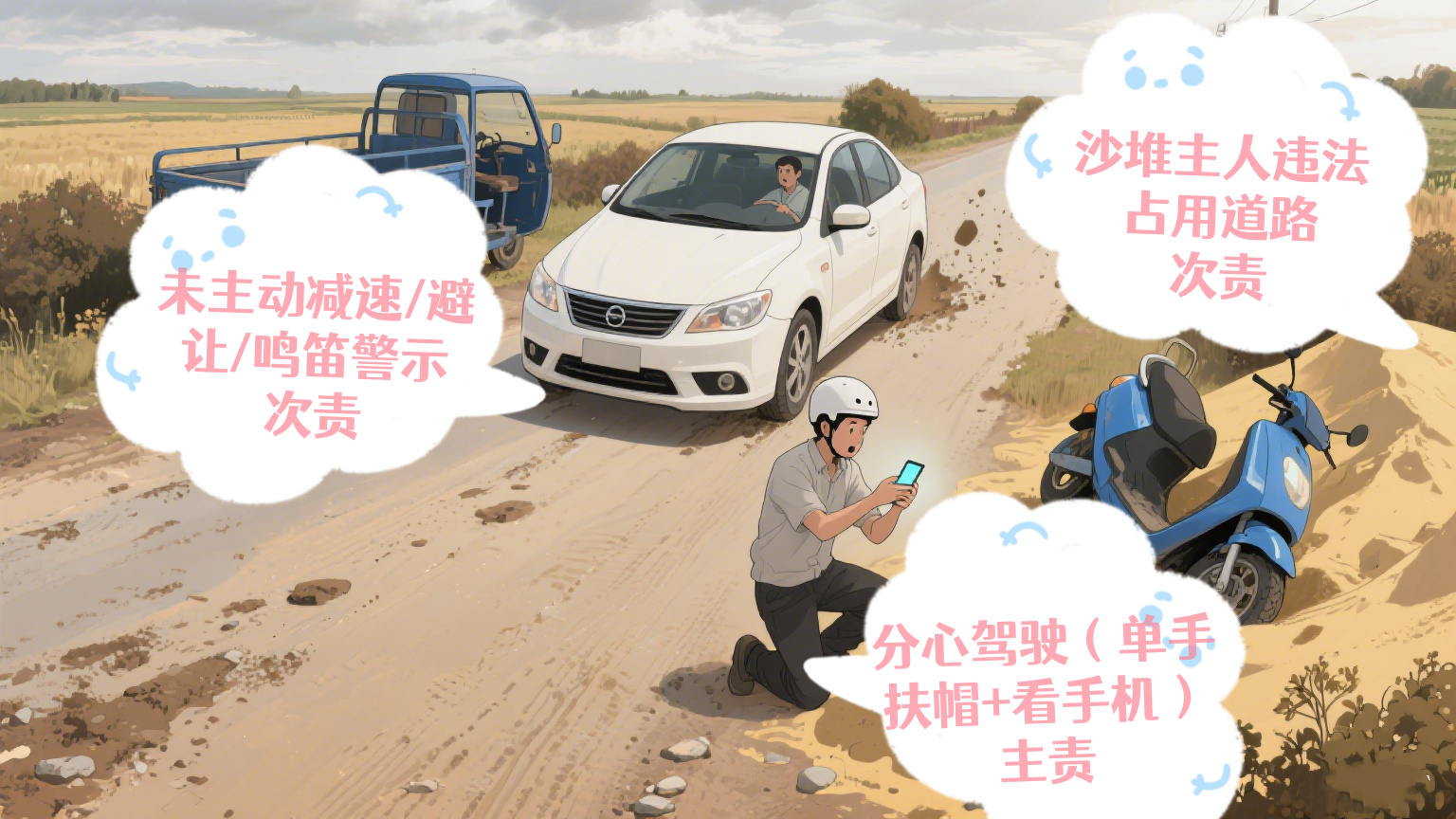 分心驾驶(单手扶帽+看手机主责)