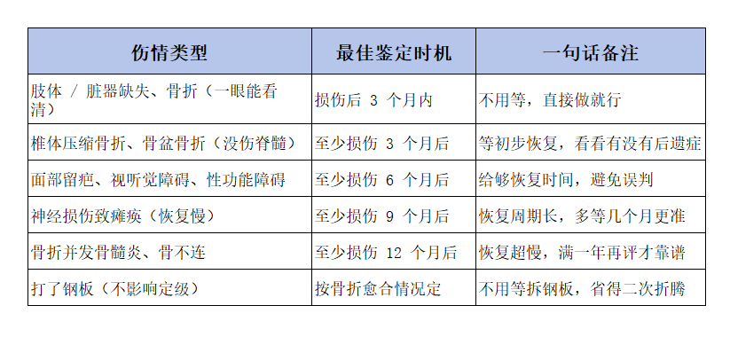 不同伤情的也有最佳鉴定时间↓↓↓